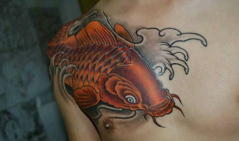本店作品纹身图片_胸部传统动物原创纹身图案