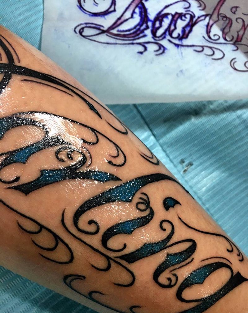 当前位置: 首页 >山东省威海市纹身店-谛听刺青纹身图案>奇卡诺原创花体纹身图片_成品腿部欧美清新字符原创纹身图案
