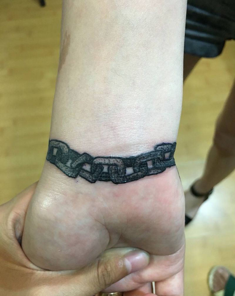 点刺手环遮盖疤痕纹身图片_成品手臂手部欧美清新静物点刺纹身图案
