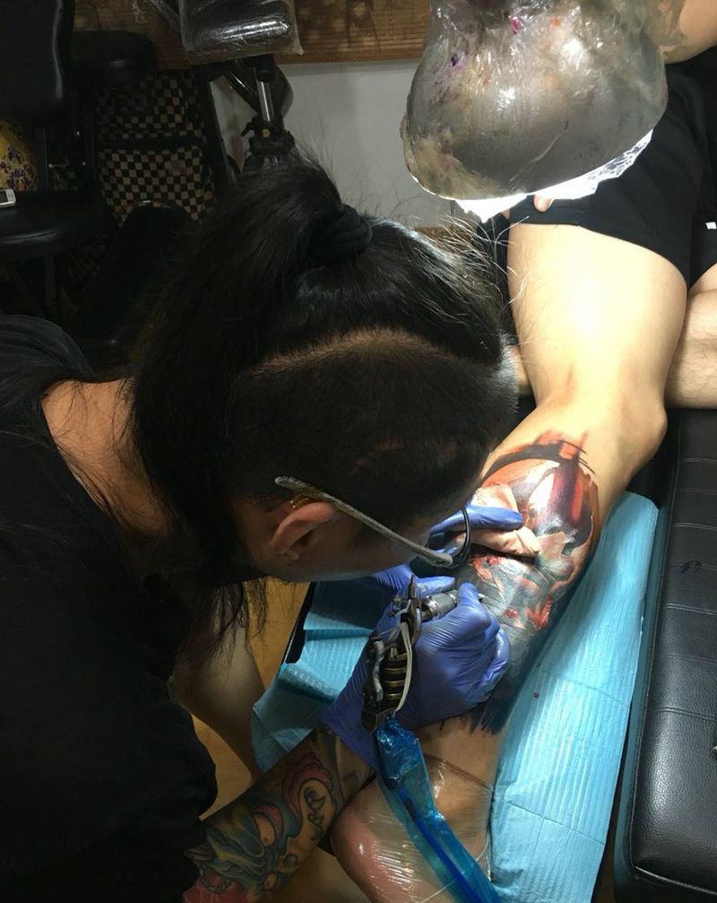 当前位置: 首页 >山东省威海市纹身店-谛听刺青纹身图案>既然要展现自己的美好何不用纹身纹身图片_成品腿部欧美写实人物泼墨纹身图案