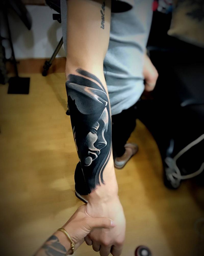 遮盖作品纹身图片_成品手臂欧美写实人物纹身图案