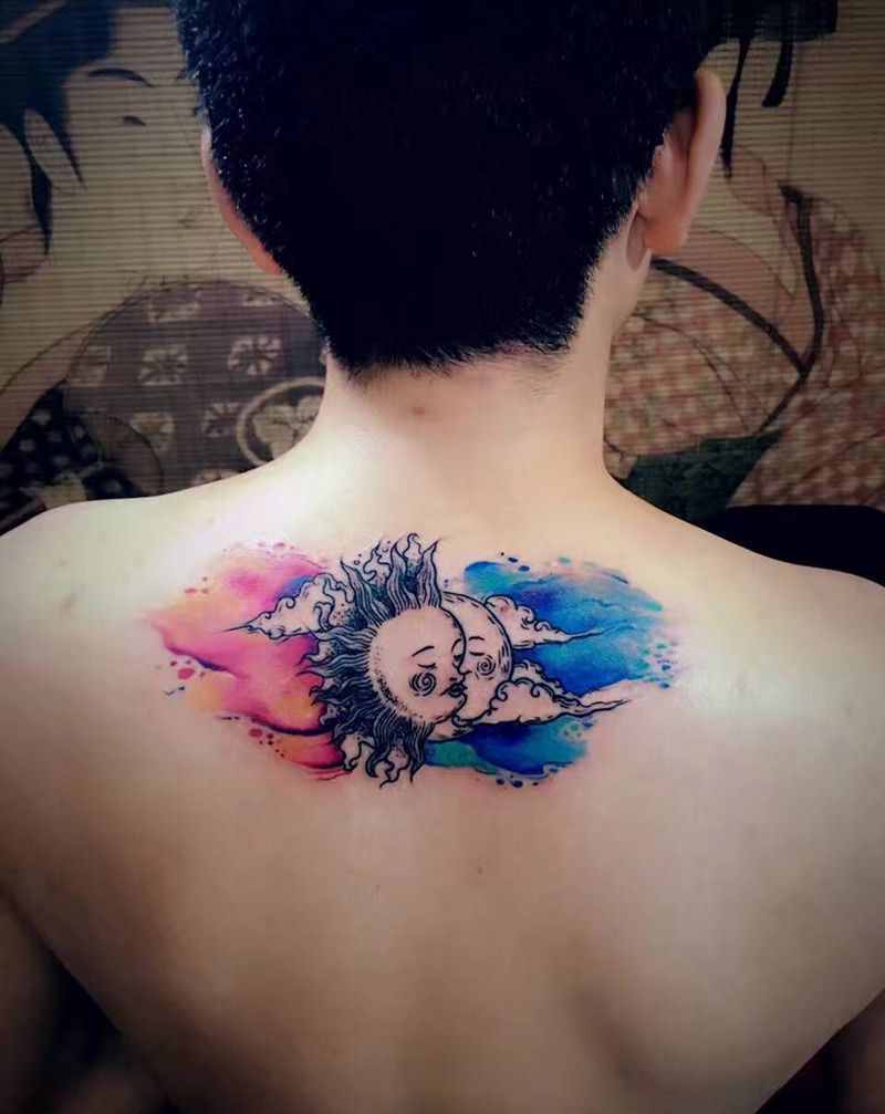 当前位置: 首页 >山东省威海市纹身店-谛听刺青纹身图案>小清新纹身图片_成品背部肩部欧美清新水彩线条纹身图案