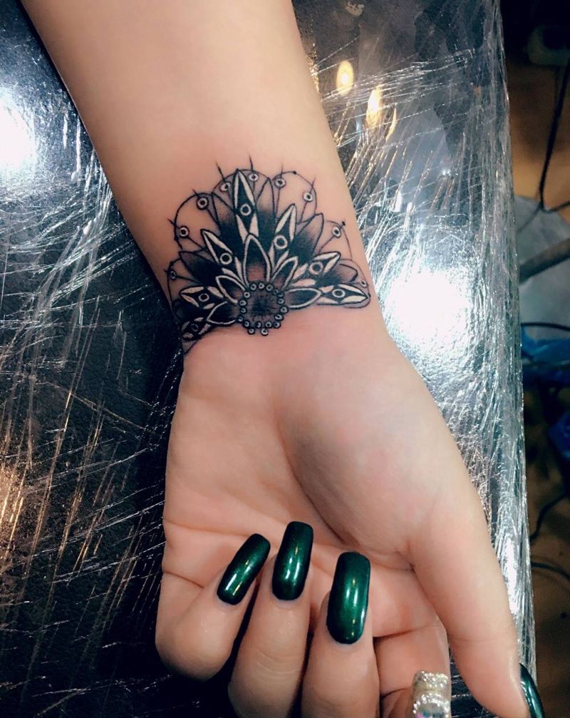 遮盖疤痕纹身图片_成品手臂手部清新几何图腾纹身图案