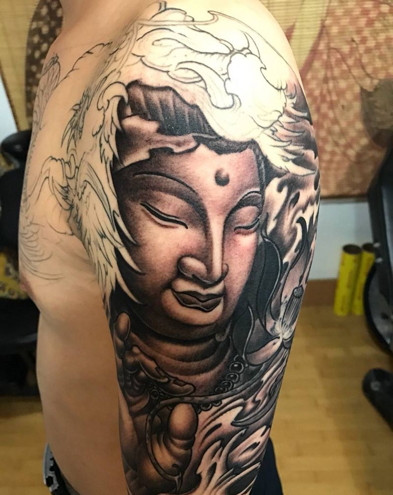 传统半甲纹身图片_成品胸部手臂肩部传统人物宗教鬼神动物纹身图案