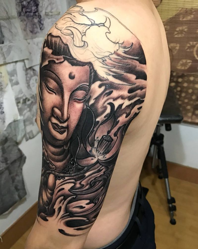 传统半甲纹身图片_成品胸部手臂肩部传统人物宗教鬼神动物纹身图案