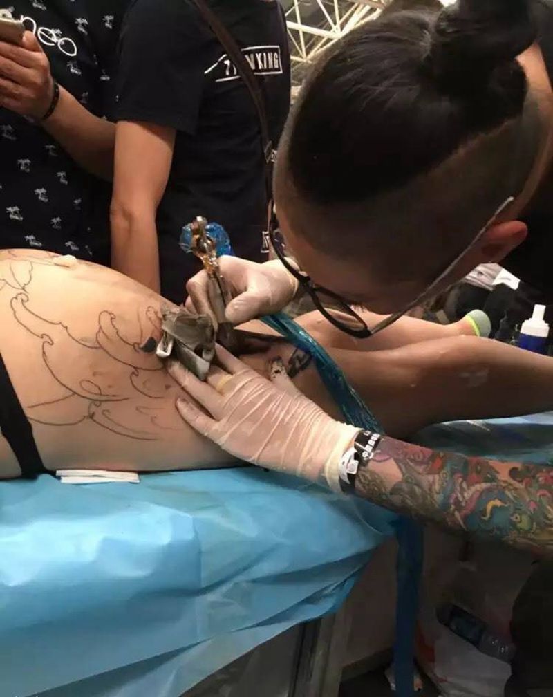 展会现场工作照纹身图片_背部腿部臀部肩部腰部传统动物植物原创纹身图案