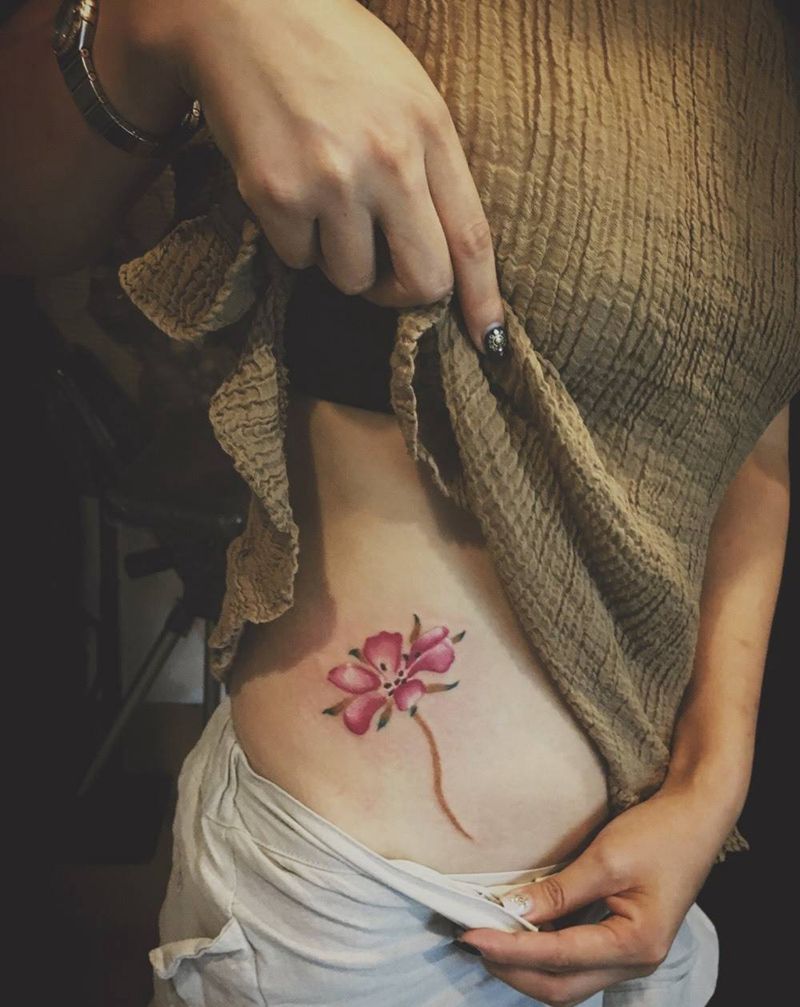 • 时尚性感的腹部莲花纹身图案