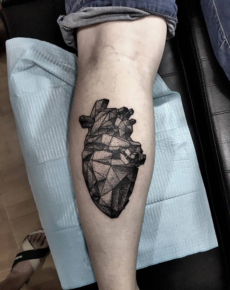 点刺几何心脏纹身图片_成品腿部脚部清新几何点刺静物欧美纹身图案