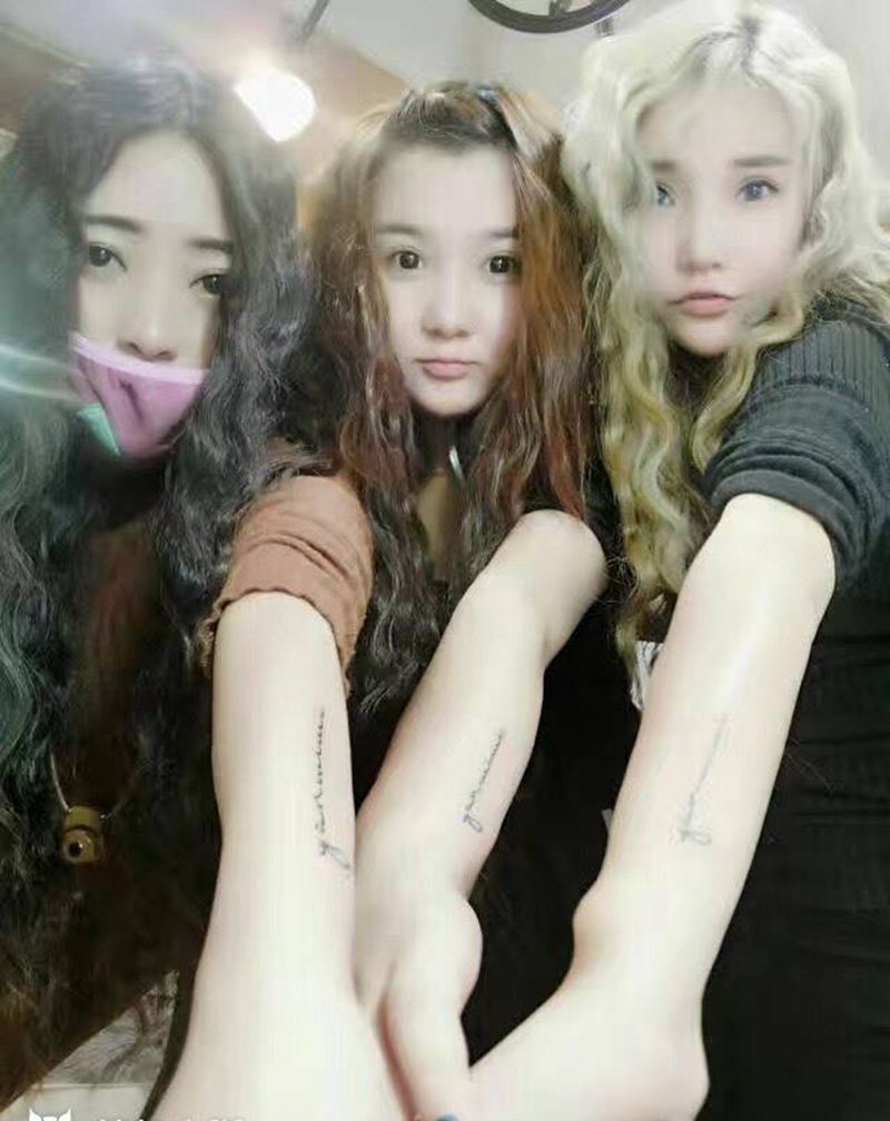 闺蜜小清新纹身图片_成品手臂手部清新字符情侣纹身图案