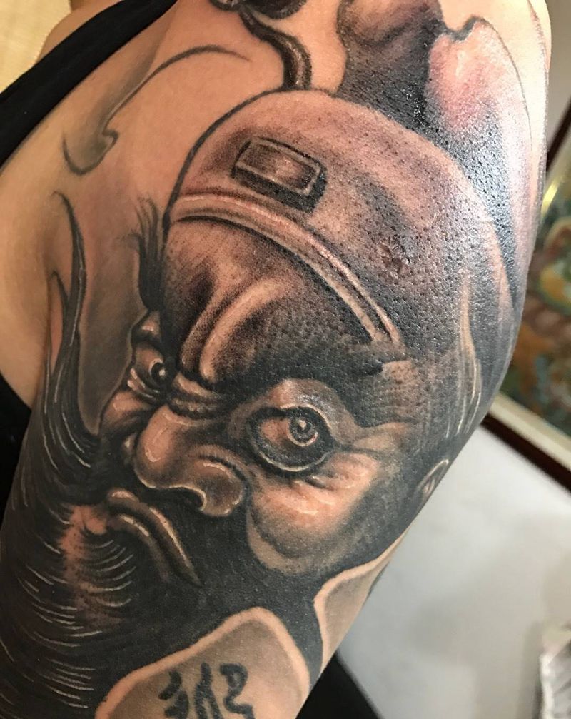 当前位置: 首页 >山东省威海市纹身店-谛听刺青纹身图案>天师钟馗纹身图片