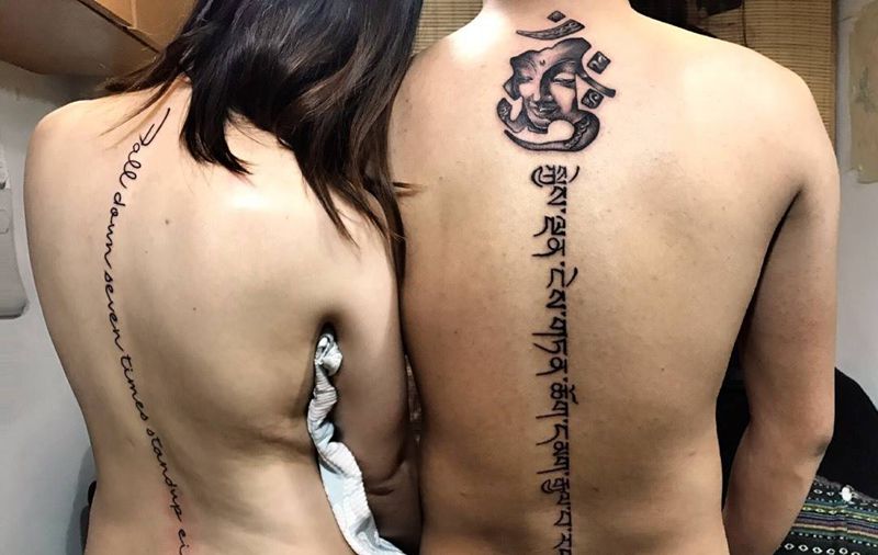 脊柱纹身[机智]纹身图片_成品背部腰部臀部欧美清新传统字符宗教鬼神纹身图案