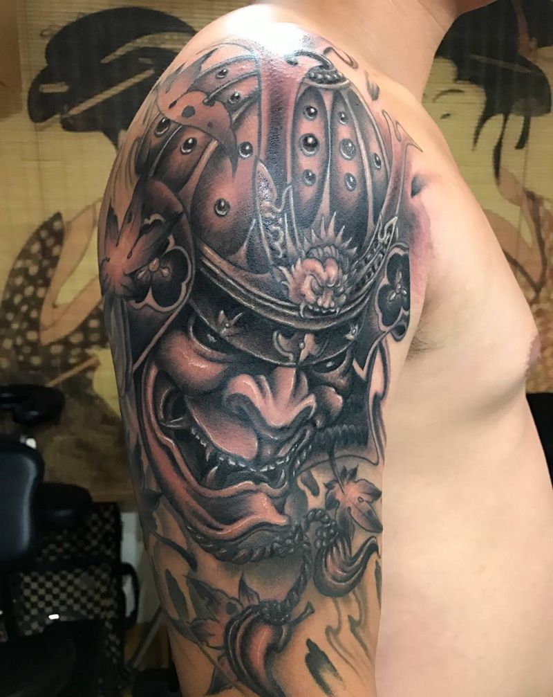 当前位置: 首页 >山东省威海市纹身店-谛听刺青纹身图案>大臂鬼武士纹身图片_成品手臂手部肩部传统人物鬼神纹身图案