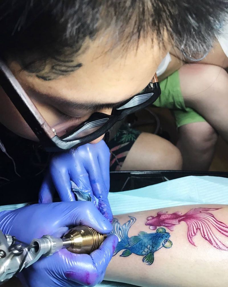 当前位置: 首页 >山东省威海市纹身店-谛听刺青纹身图案>金鱼纹身图片_成品腿部清新动物脚部纹身图案