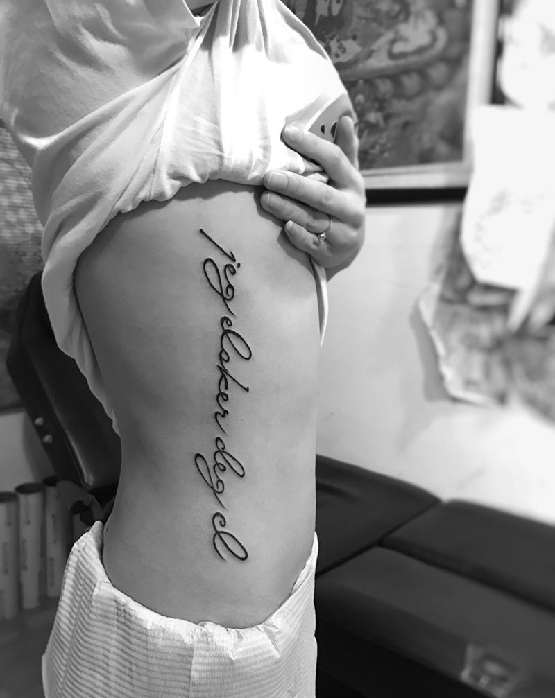 小清新纹身图片_成品腰部清新字符线条纹身图案