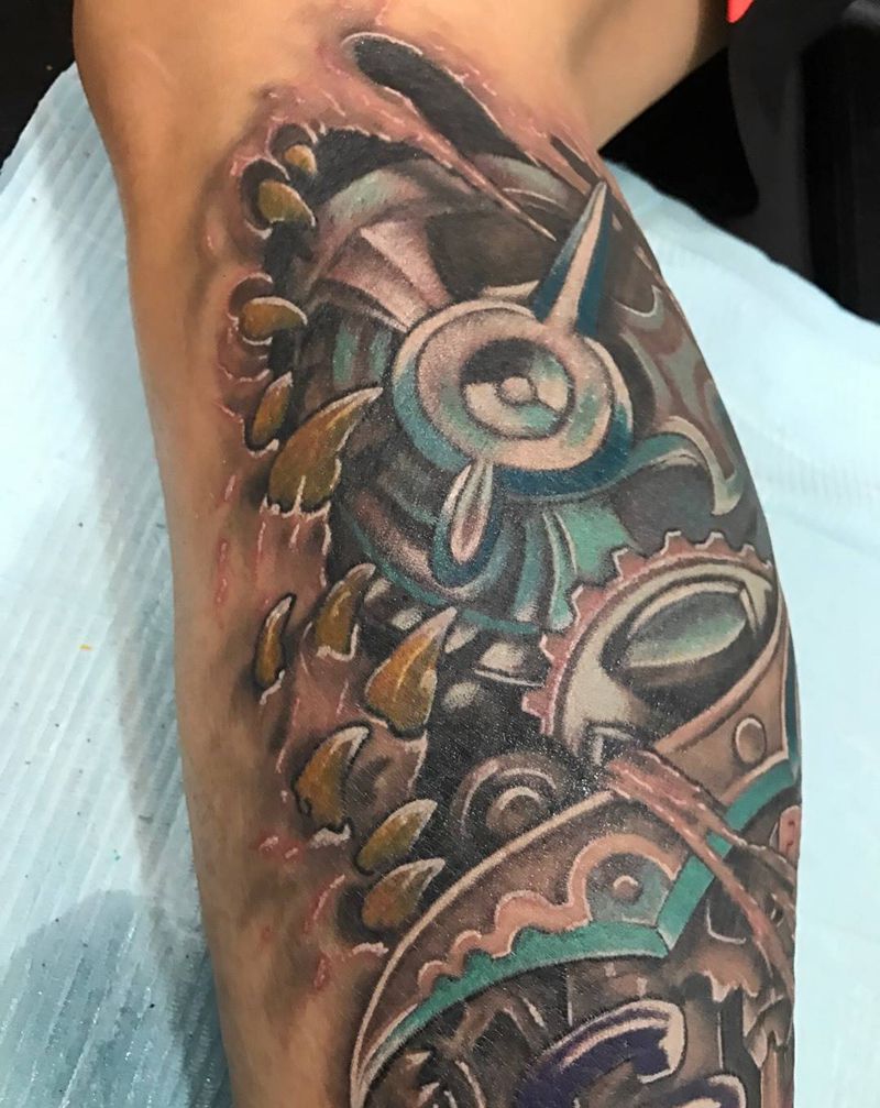 当前位置: 首页 >山东省威海市纹身店-谛听刺青纹身图案>生物机械腿纹身图片_成品脚部腿部欧美机械3D纹身图案
