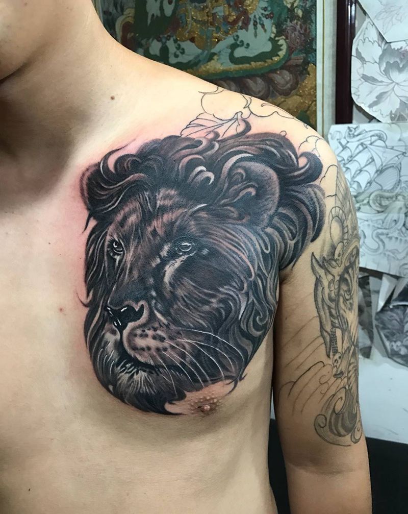 狮子纹身图片_成品胸部肩部欧美写实动物手臂臀部背部腿部纹身图案