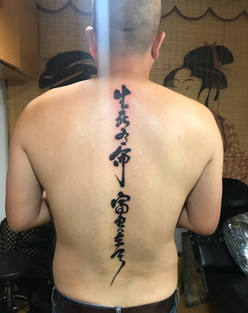 当前位置: 首页 >山东省威海市纹身店-谛听刺青纹身图案>书法纹身图片_成品颈部肩部背部腰部传统国画字符线条点刺纹身图案