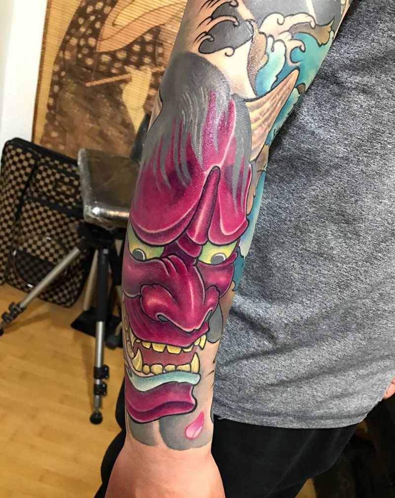当前位置: 首页 >山东省威海市纹身店-谛听刺青纹身图案>牡丹般若纹身图片_成品手臂手部传统植物鬼神人物动物纹身图案