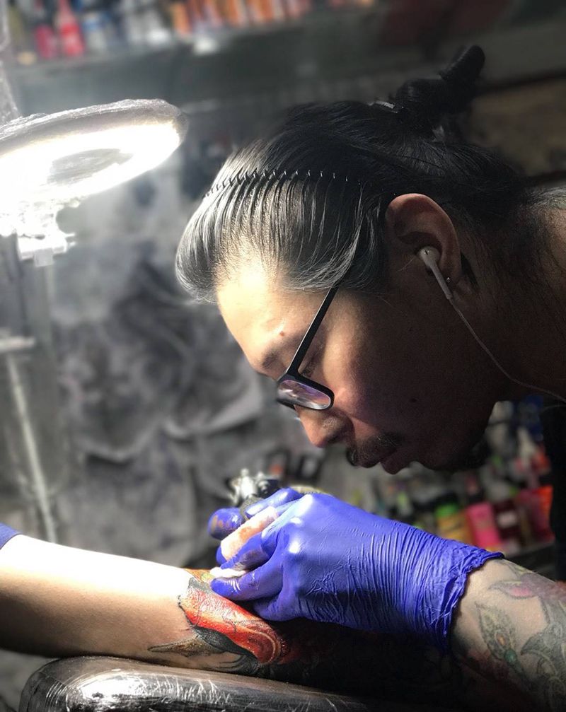 当前位置: 首页 >山东省威海市纹身店-谛听刺青纹身图案>原图修改加彩色纹身图片_成品手臂手部传统动物鬼神人物植物静物宗教纹身图案