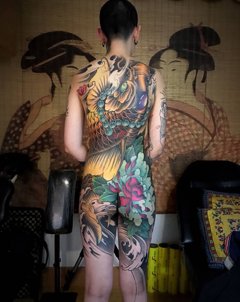 当前位置: 首页 >山东省威海市纹身店-谛听刺青纹身图案>满背鲤鱼纹身图片_成品颈部肩部腿部臀部背部腰部传统动物植物纹身图案