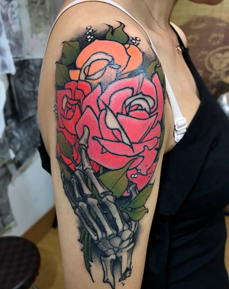 当前位置: 首页 >山东省威海市纹身店-谛听刺青纹身图案>手捧花纹身图片_成品手部手臂肩部欧美鬼神人物植物纹身图案
