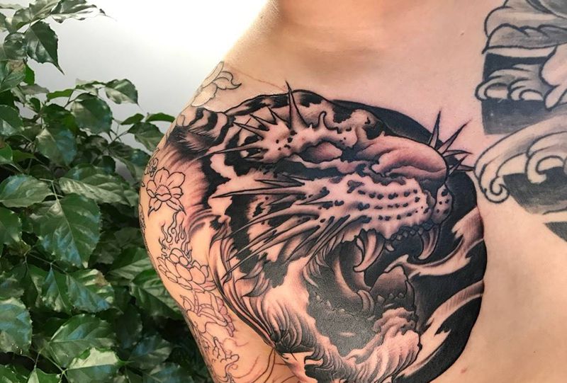 • 女性大花胸纹身_43张霸气漂亮的女性大花胸纹身图案作品