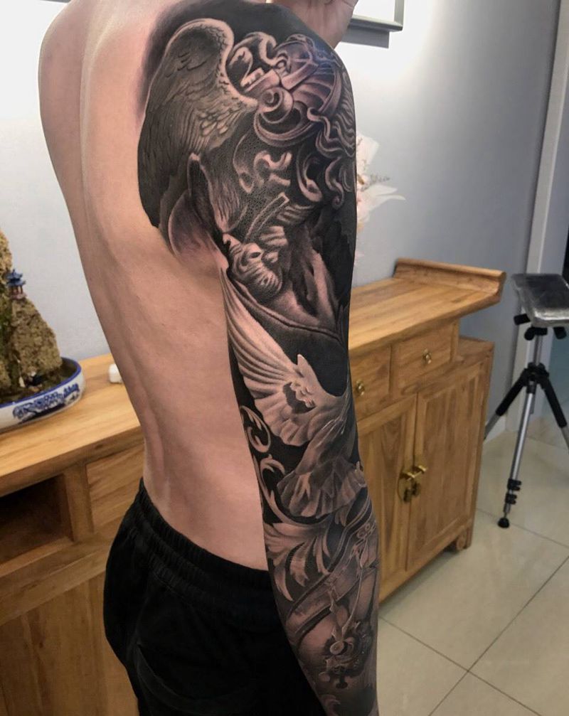 • 纹身吧推荐的披肩图腾半胛纹身图案作品展示