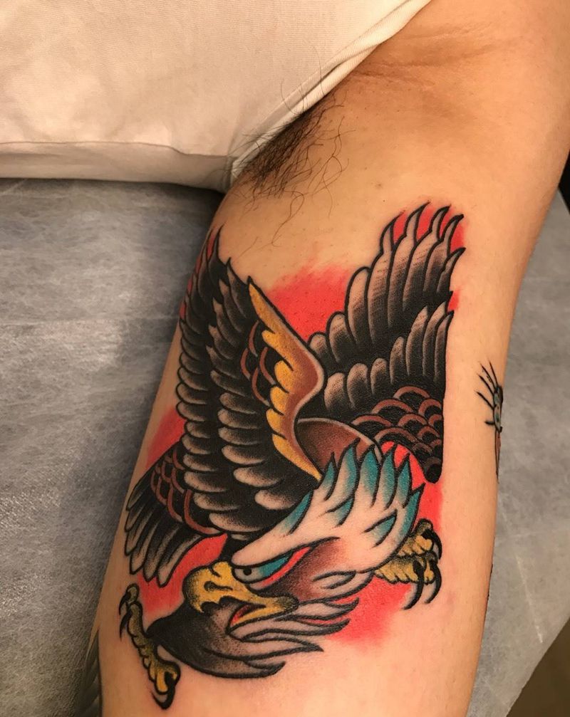 当前位置: 首页 >山东省威海市纹身店-谛听刺青纹身图案>old school纹身图片_手臂手部Old School鹰纹身图案