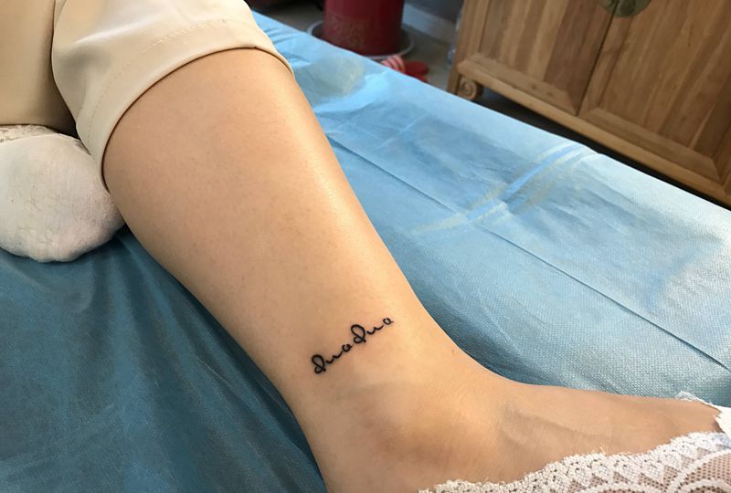 当前位置: 首页 >山东省威海市纹身店-谛听刺青纹身图案>小清新纹身图片_腿部脚部花体字点刺海浪鱼尾鲸鱼纹身图案