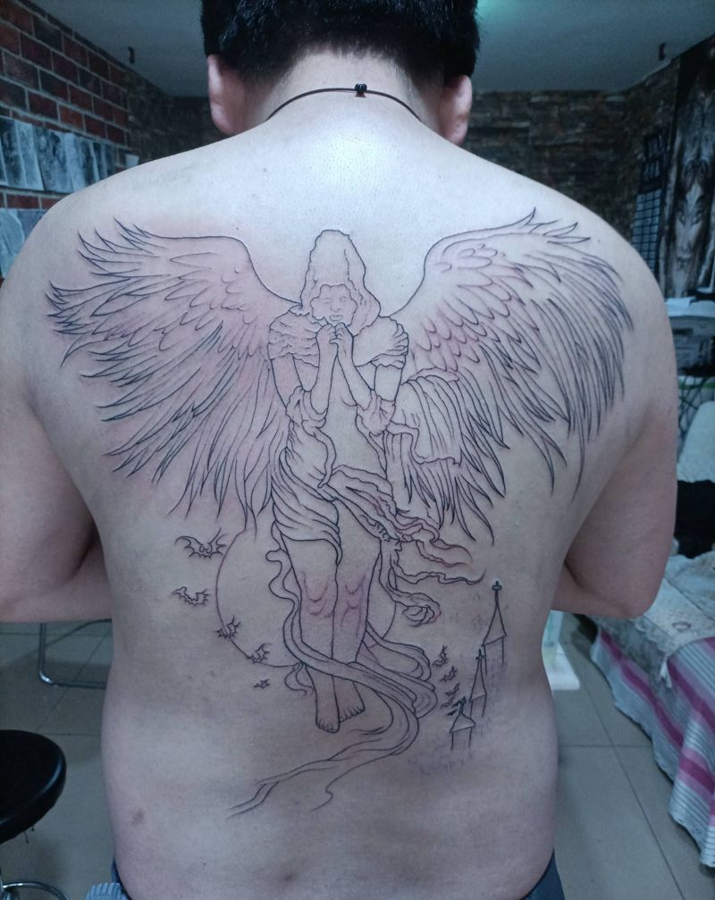 当前位置: 首页 >山东省威海市纹身店-同道刺青纹身图案>天使纹身图片_背部新传统纹身图案