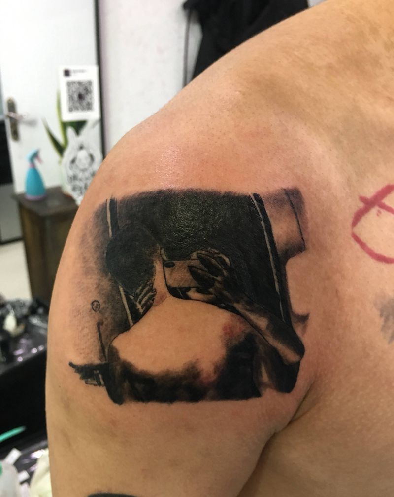 当前位置: 首页 >山东省威海市纹身店-青木刺青纹身图案>欧美花臂纹身图片_手臂欧美写实肖像麦克风玫瑰花纹身图案