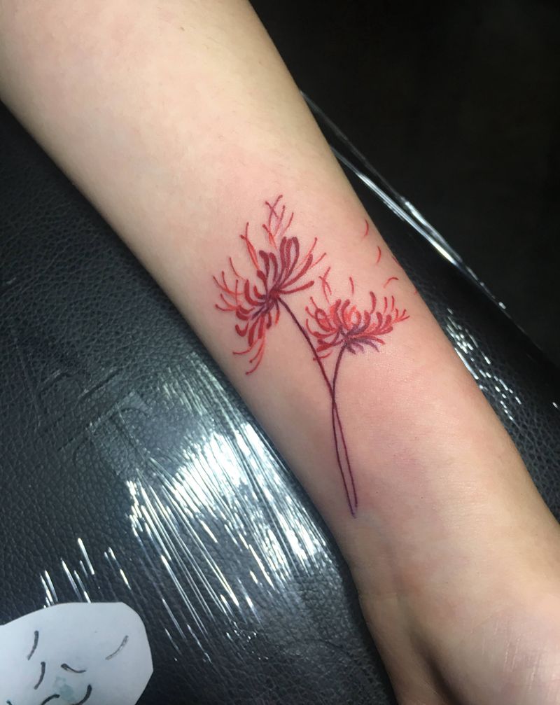 彼岸花纹身图片_手臂彼岸花小清新纹身图案