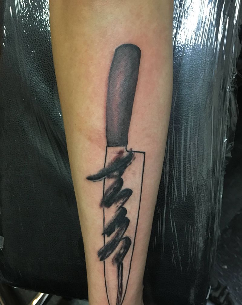 当前位置: 首页 >山东省威海市纹身店-青木刺青纹身图案>一把刀纹身图片_手臂水墨书法纹身图案