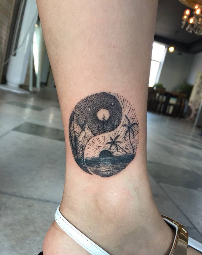 遮盖(点刺圆5)纹身图片_成品腿部清新点刺纹身图案