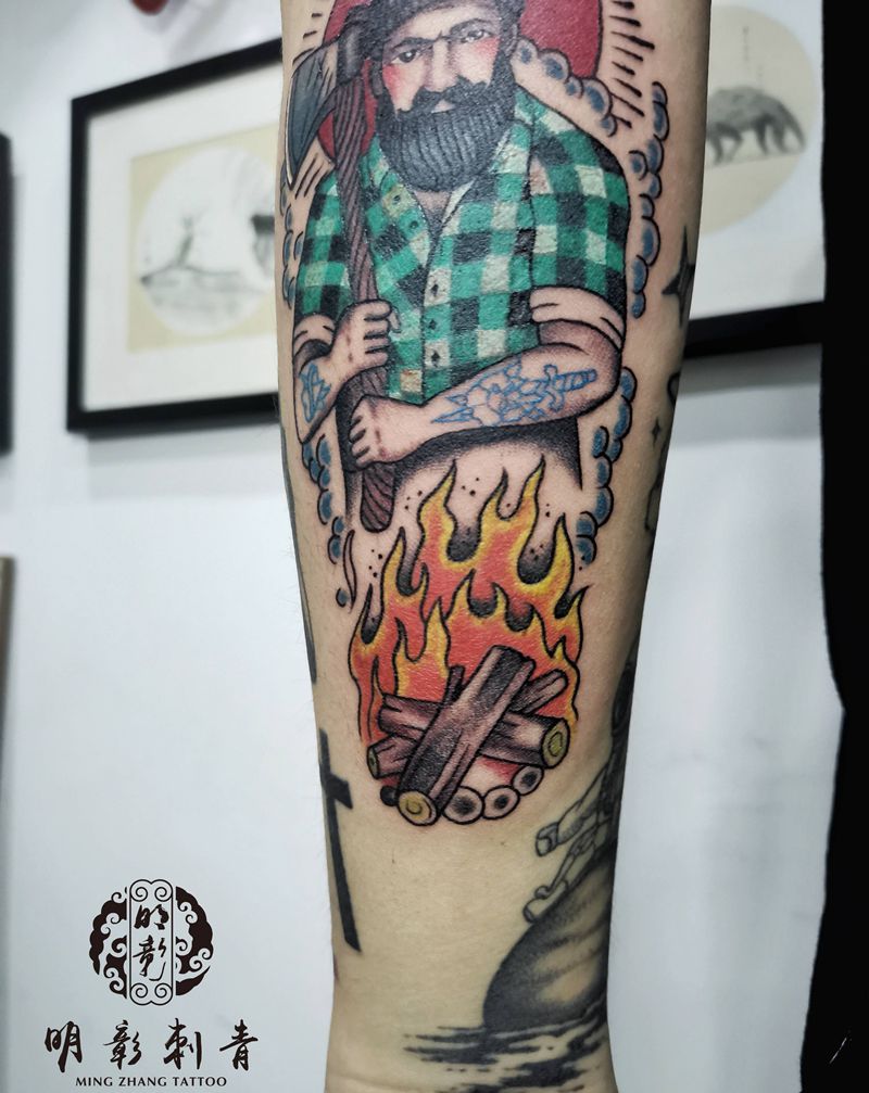 当前位置: 首页 >山东省日照市纹身店-明彰刺青纹身图案>old school人物火堆纹身图片_手臂Old School纹身图案