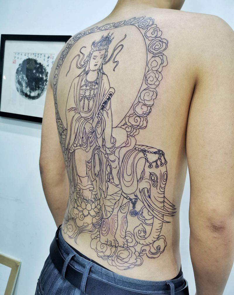 普贤菩萨纹身图片_背部新传统纹身图案