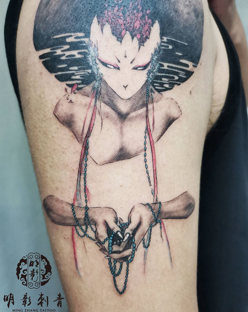 当前位置: 首页 >山东省日照市纹身店-明彰刺青纹身图案>敦煌芨手稿人物纹身图片_手臂水墨纹身图案