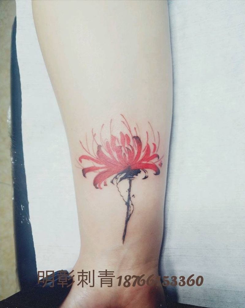 当前位置: 首页 >山东省日照市纹身店-明彰刺青纹身图案>彼岸花纹身图片_手臂水墨纹身图案