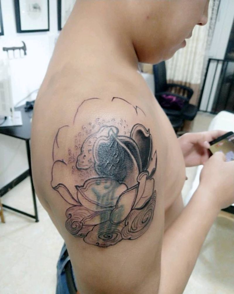 当前位置: 首页 >山东省日照市纹身店-明彰刺青纹身图案>荷花 遮盖旧纹身纹身图片