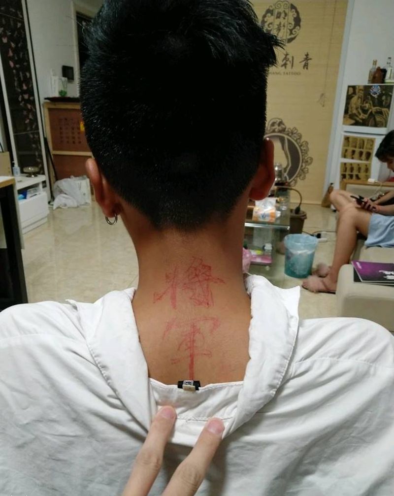 將軍纹身图片_颈部传统国画字符成品手稿纹身图案