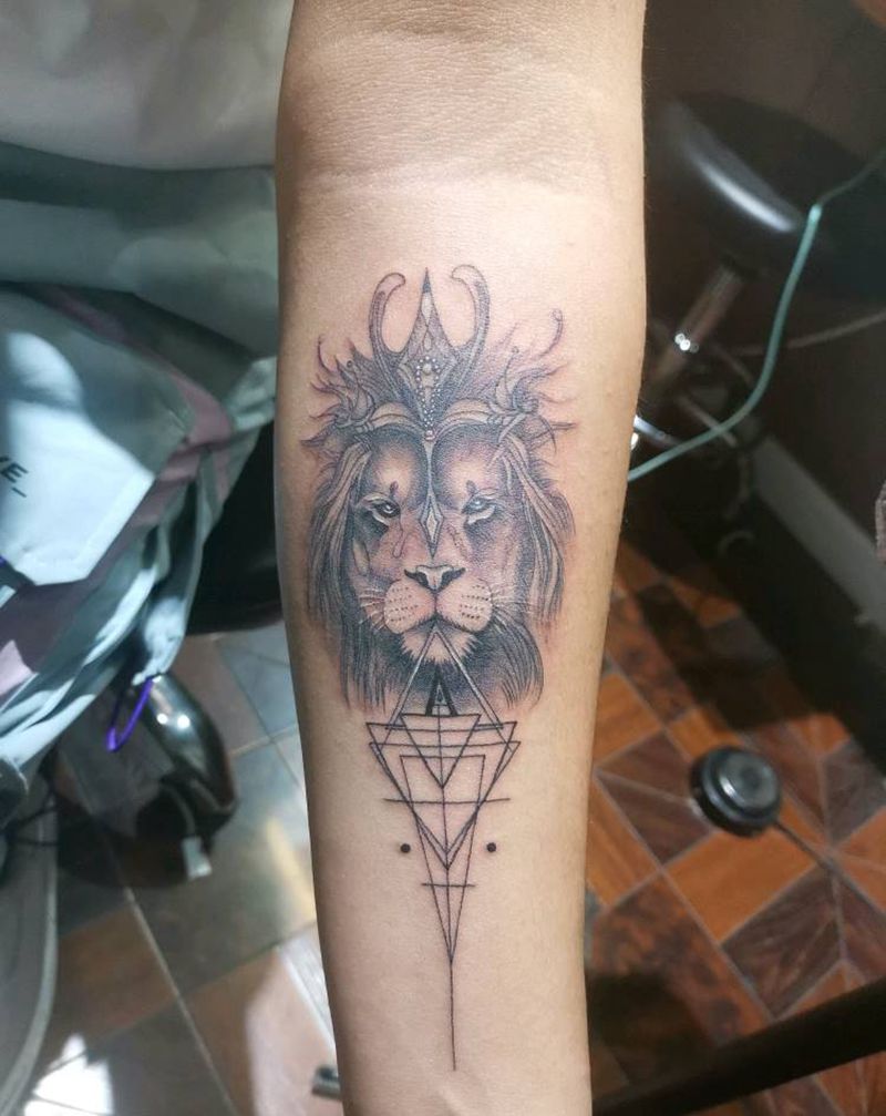 当前位置: 首页 >山东省日照市纹身店-明彰刺青纹身图案>狮子+几何纹身图片