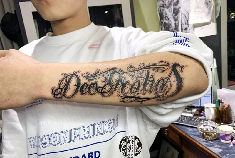 当前位置: 首页 >山东省日照市纹身店-明彰刺青纹身图案>奇卡诺花体字纹身图片_手臂花体字纹身图案