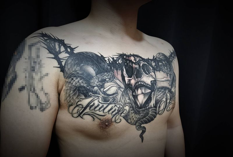 定制版花胸遮盖完成~纹身图片_胸部纹身图案
