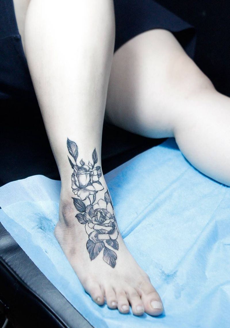 脚部线花纹身图片_成品脚部清新植物纹身图案