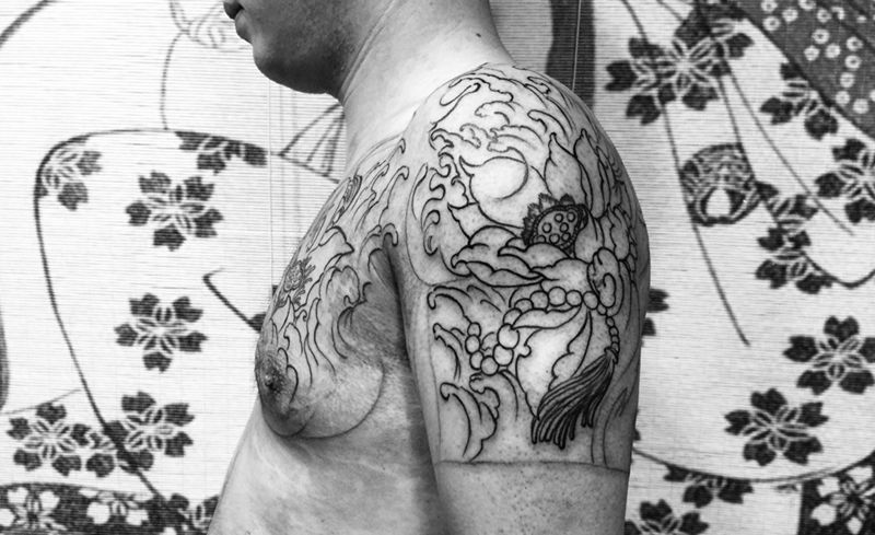 当前位置: 首页 >山东省威海市纹身店-鞭挞刺青纹身图案>莲花半甲纹身图片_成品手臂胸部肩部传统植物字符纹身图案