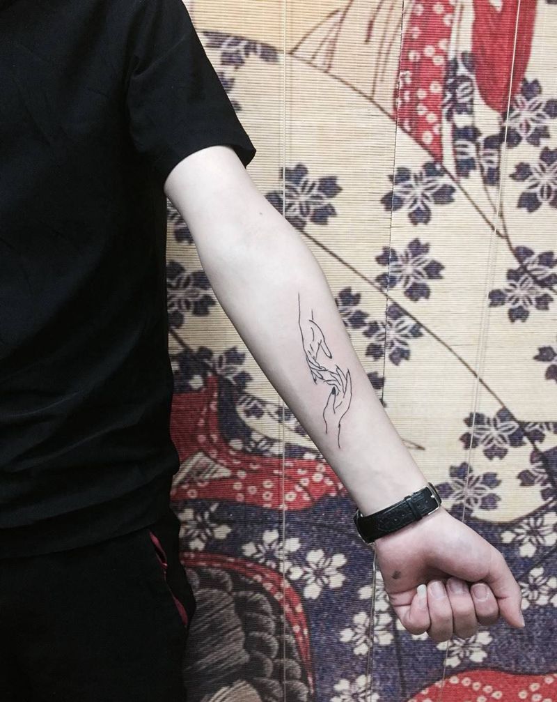 今日“手”纹身纹身图片_成品手臂清新习俗写实人物情侣纹身图案