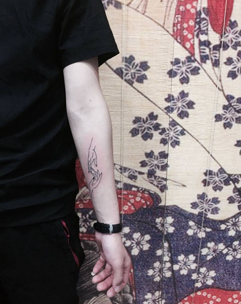 今日“手”纹身纹身图片_成品手臂清新习俗写实人物情侣纹身图案