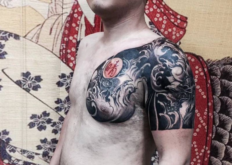黑灰满背纹身图案