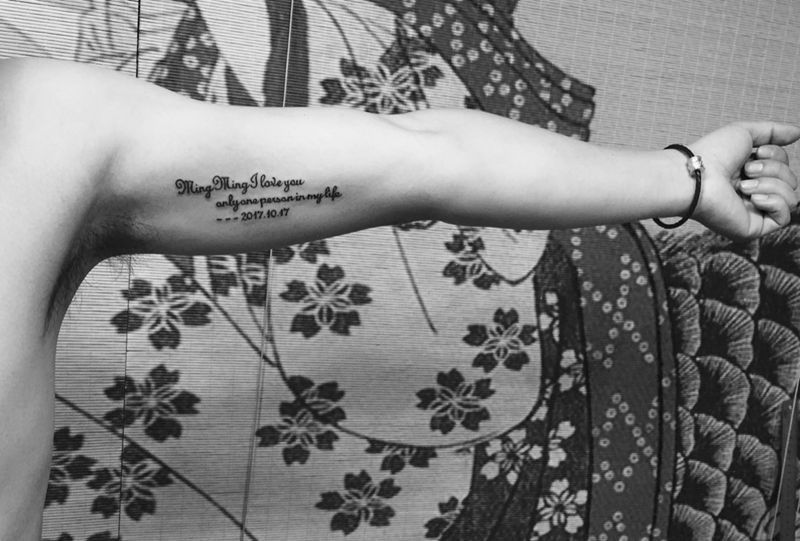当前位置: 首页 >山东省威海市纹身店-鞭挞刺青纹身图案>爱意纹身图片_成品手臂习俗清新字符情侣纹身图案