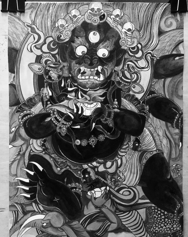 大黑天啦纹身图片_手稿背部腹部胸部传统鬼神原创纹身图案